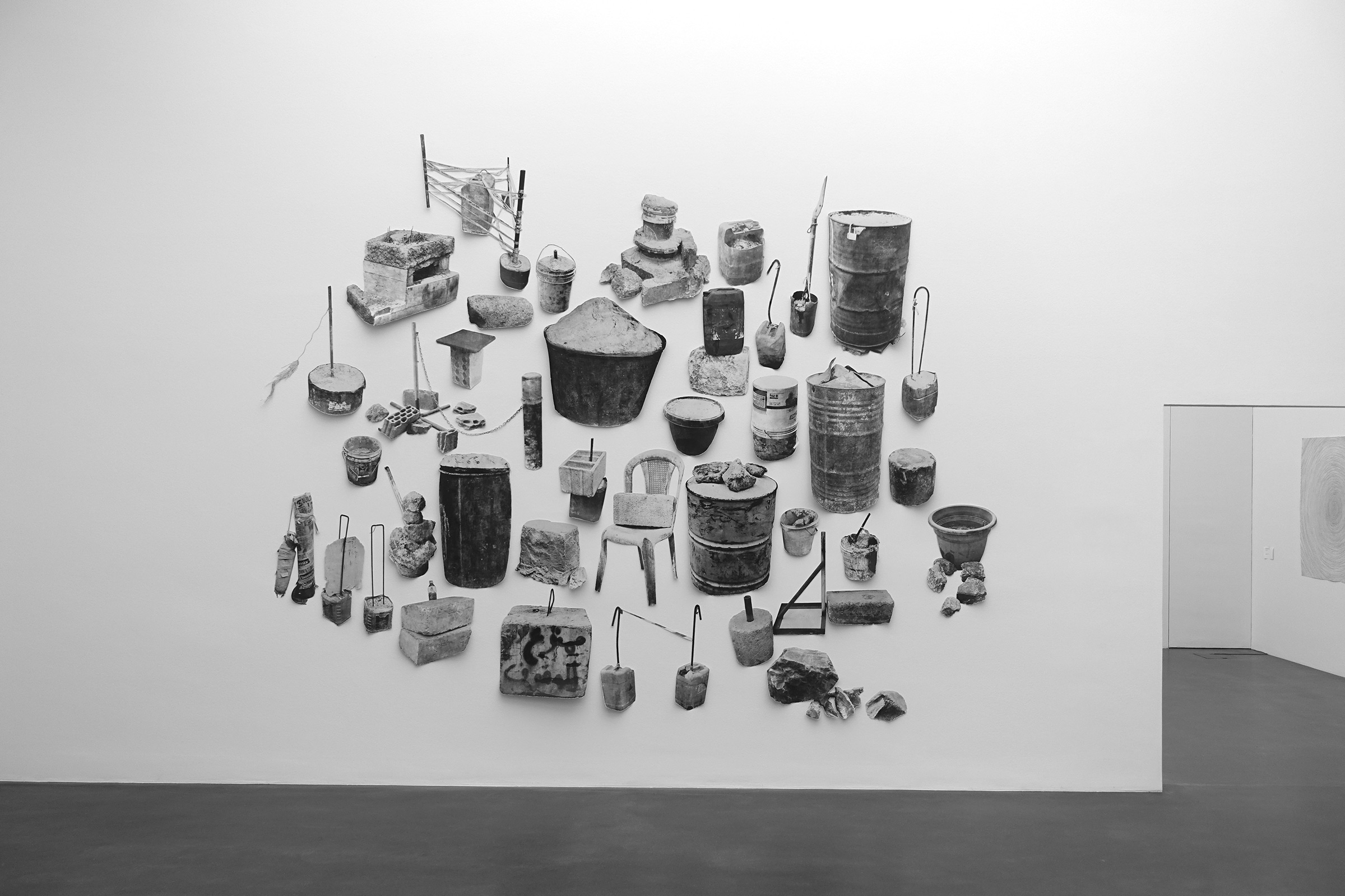 The work "Beirut street view" shows a collection of objects from the streets of Beirut district Zokak el Blat. The countless improvised things serve to keep areas free. As recurrent elements, the raw materials stone and concrete come from the omnipresent construction sites and ruins. The materials store information about the conditions and the time in which they were processed, thus materializing the micro-history of a place. The placeholders become small monuments, a memorial archive. What is the significance of the material we encounter and when does history emerge? According to Certeau, historiography is fundamentally shaped by the experience of absence. Thus, we have no other option than to ask the visible for the invisible. Is history what is left or what disappears? I observe how they are assembled and layered and transform the spontaneously constructed forms into subtle objects of memory.