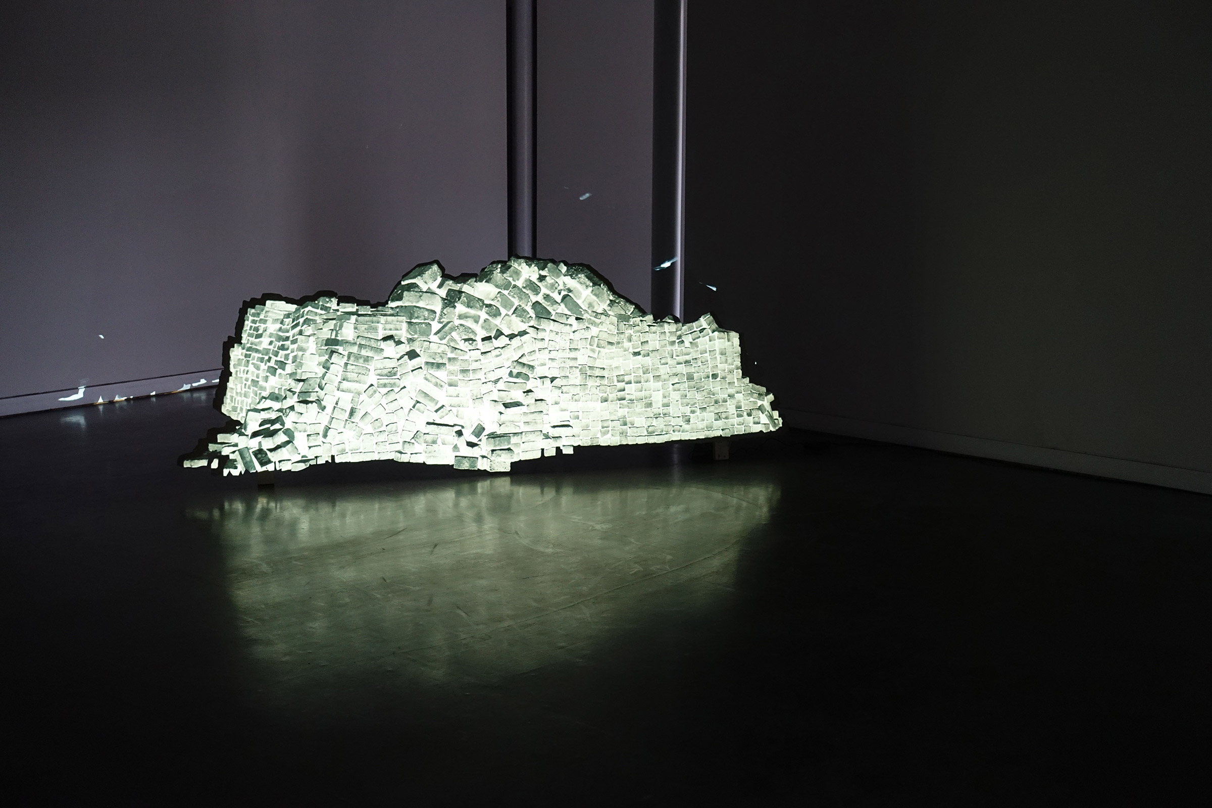 Reality is always dependent on the viewer's point of view. In this projection in the exhibition space, too, the view of the shadow cast changes depending on the position of the person observing it. With reference to the concept of first-person perspective from philosophy, the title "Construction for a first world perspective" thematises the impossibility of fully comprehending other points of view and intentions.