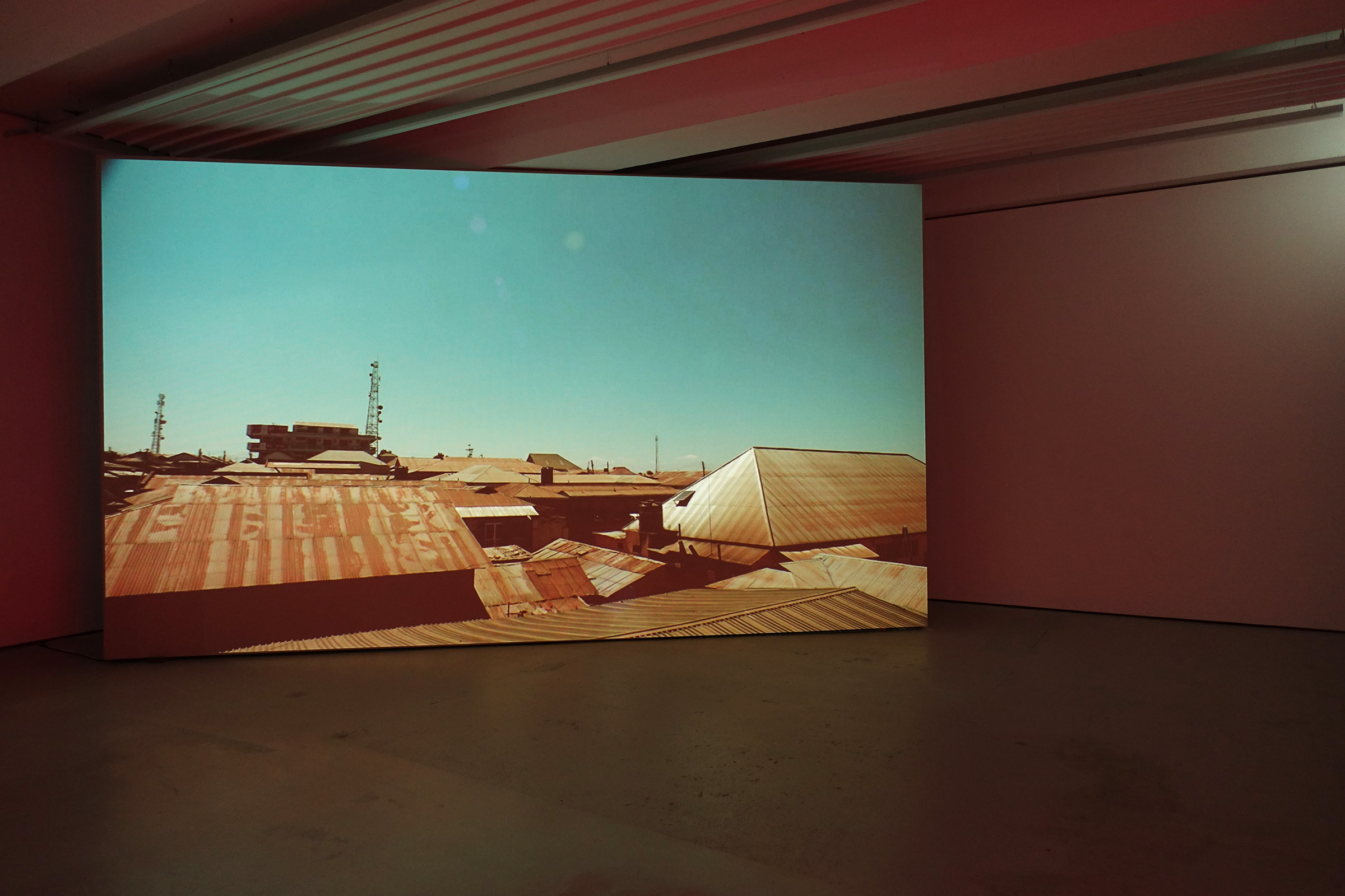 Die Wirklichkeit ist immer abhängig vom Standpunkt des betrachtenden Individuums. Auch bei dieser Projektion im Ausstellungsraum verändert sich die Sicht auf den geworfenen Schatten je nach Position der beobachtenden Person. In Bezug auf den Begriff erste-Person-Perspektive aus der Philosophie thematisiert der Titel «Construction for a first world perspective» die Unmöglichkeit, andere Sichtweisen und Absichten vollkommen nachzuvollziehen.